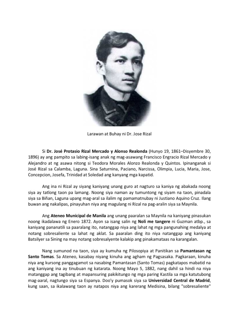 Larawan At Buhay Ni Dr Jose Rizal