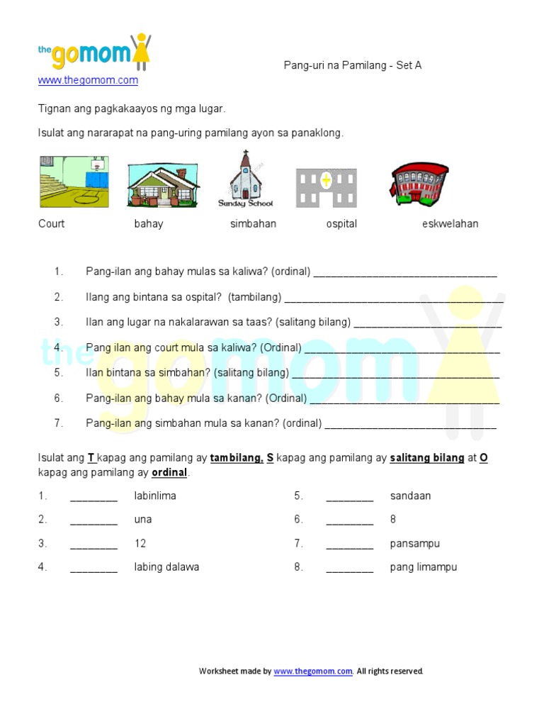 Uri ng pang uring pamilang worksheet pdf. Pang-uring Pamilang - ProProfs Quiz. The student is asked to classify the adjective in bold in each sentence as panlarawan pantangi or pamilang. This 20-item worksheet asks the student to classify the underlined adjective in the sentence as a descriptive adjective pang-uring panlarawan a cardinal adjective pang-uring pamilang or as an ordinal adjective pang-uring panunuran.